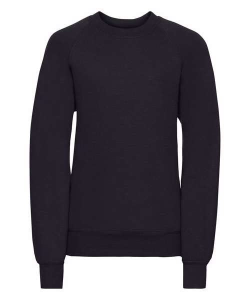 Iconic school sweatshirt. Twin needle coverseams on neck. Raglan sleeve cuffs and waistband for extra durability. Herringbone back neck tape. Spotshield stain resistant coating for fabric protection. Fade resistant.