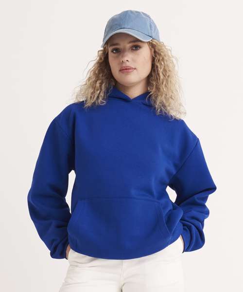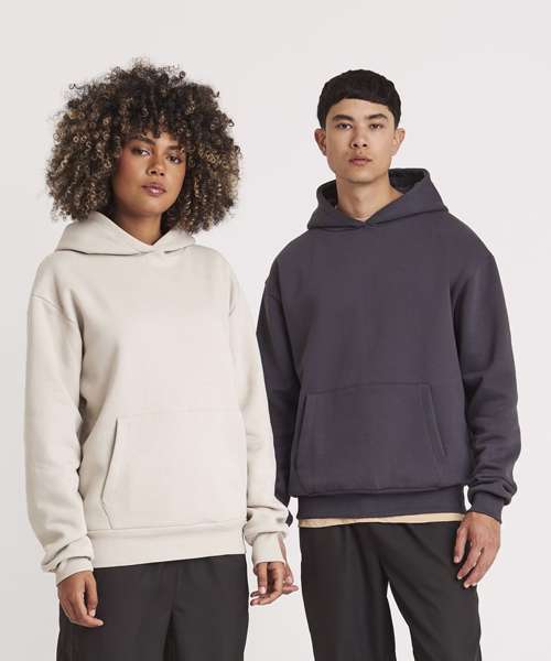This unisex hoodie ensures maximum style with minimal effect. Made with a heavyweight, premium, cotton-rich fabric, it has an oversized boxy fit, true to size. Features include a large pouch pocket, ribbed cuffs and hem. A hoodie to keep you warm and comfortable – and an everyday essential.