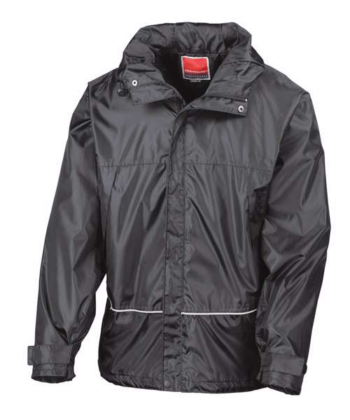Waterproof (2000mm). Windproof. Foldaway shadow printed lined hood with shockcord adjusters. Stud closing stormflap. Full front zip fastening. 2 mesh lined zip closing side pockets. Tear release adjustable cuffs. Adjustable shockcord hem. Decorative reflecting piping around lower body. Fully taped waterproof seams. Concealed access for print and embroidery. Decoration Guidelines:Decorating methods: Embroidery, Direct print, Transfer print & Screen print transfer. Decorators access point: Hem access.