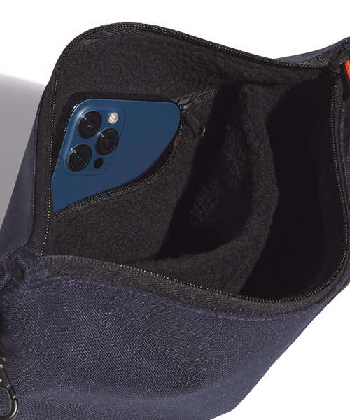 Golf pouch with clip attachment. Made, in part, with recycled materials.