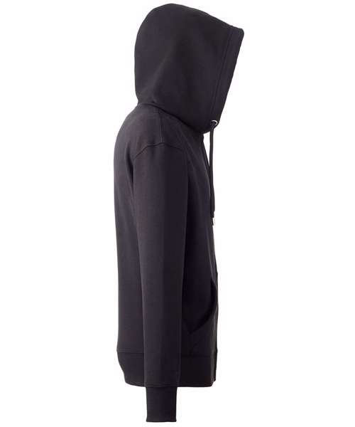 Shaped to fit. 320gsm. Peached fabric, soft-feel finish. Waffle knit hood. High polished, nickel free eyelets, zip and drawcord ends. Polyester dyed to match tubular drawcord. Concealed zip. Brushed fleece inner. Twin-needling detailing creates a high quality finish. Cut and sew two by one ribbed cuffs and hem. Kangaroo pouch pocket. Self-coloured neck size label.