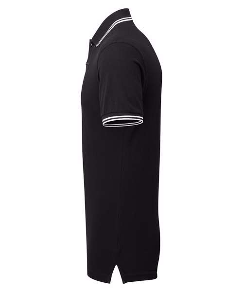 Classic fit polo with tipped contrast detail to the collar and cuffs. 2 button placket. Short sleeves. Side vents. Knitted collar and cuffs. Machine washable. Product contains no branded neck label. Removable Kimble or looped garment tags. Inner seam label holds important product information on one label with a second label containing brand information which can be cut-away. Please note old stock may contain a fixed branded label.