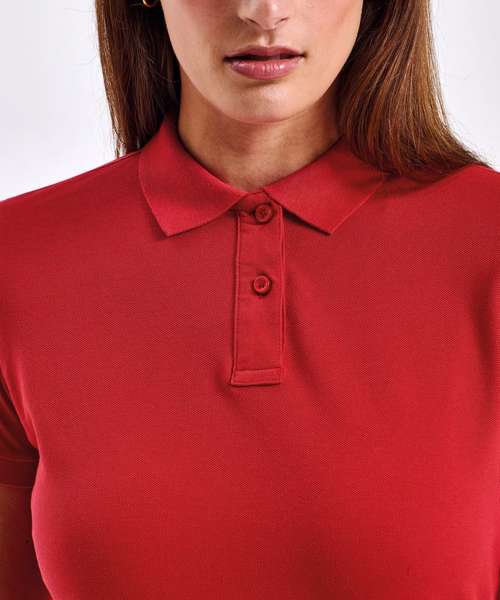 Women's feminine fit polo. 2 button placket. Short sleeves. Side vents. Knitted collar and cuffs. Machine washable. Product contains no branded neck label. Removable Kimble or looped garment tags. Inner seam label holds important product information on one label with a second label containing brand information which can be cut-away. Please note old stock may contain a fixed branded labelc.