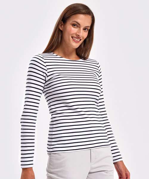 A classic wardrobe favourite, the women's marinière coastal tee features a clean wide neckline, long sleeves and feminine fit making it an easy, versatile piece you'll come back to again and again.