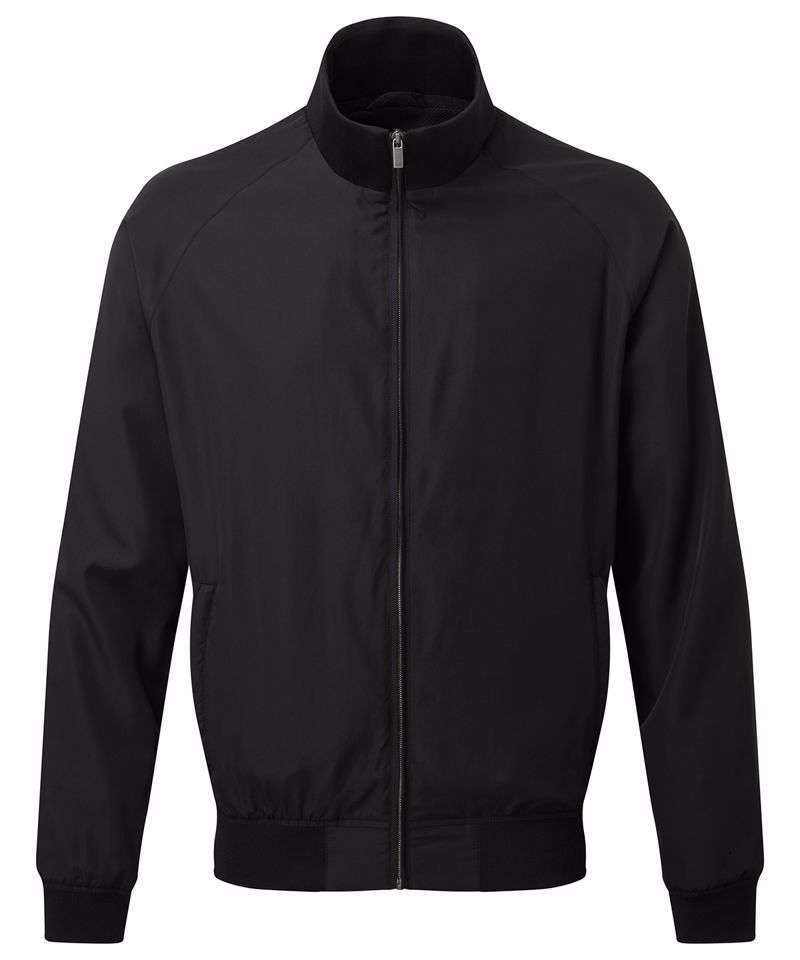 Classic fit Harrington style jacket. Elasticated ribbed knit collar, cuffs and hem. Finishes just beneath the waistline. Full-zip through style. Two side slit pockets. Embroidery access on the lower back and left hand side of chest. Product contains no branded neck label. Removable Kimble or looped garment tags. Inner seam label holds important product information on one label with a second label containing brand information which can be cut-away. Please note old stock may contain a fixed branded label.