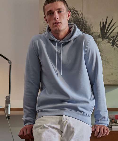 Trendy organic hooded sweatshirt with retail fashion oriented look and feel. Strong styling with great fitting and perfect length. Pockets placed in side seams to allow maximum front decoration surface area. Side seams ensure the best fit and a masculine silhouette. Visible "Hi! I'm Organic" neck tab to highlight the organic value of the garment. Easy branding solution - B&C Band No label solution. Inside single Jersey halfmoon in back to allow easy branding personalisation. Retail like features: single Jersey lined hood, qualitative herringbone neck tape and fashionable drawcord.