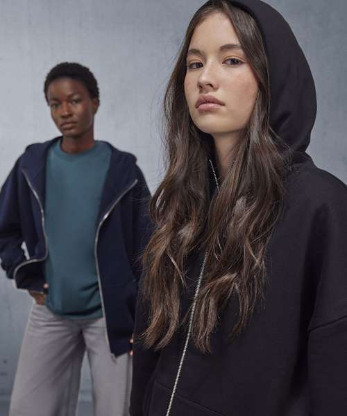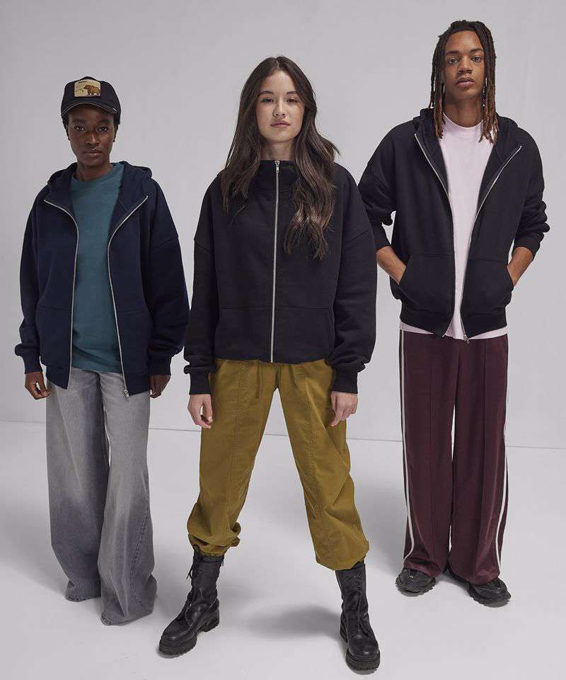 True unisex design approach with side seams. Durable 350gsm fabric with a sturdy, substantial hand feel. B&C PST (Perfect Sweat Technology). Low shrinkage fleece (LSF). 100% cotton face for perfect printability. Luxurious hand feel. Dropped shoulder and oversized feel for a relaxed fit. Unique high collar that offers extra protection. Jersey-lined two-part hood without drawcords for an urban, minimalist look that effortlessly frames the face. Durable metal zip. Deep pockets thoughtfully crafted for comfortable hand placement. High-quality cuffs and bottom hem in 1x1 rib. Available in best-selling colours to serve POD, influencer and music merch, fashion and retail/e-tail, workwear and academic segments. ‘B&C No Label’ solution for easy rebranding. Contains recycled polyester.