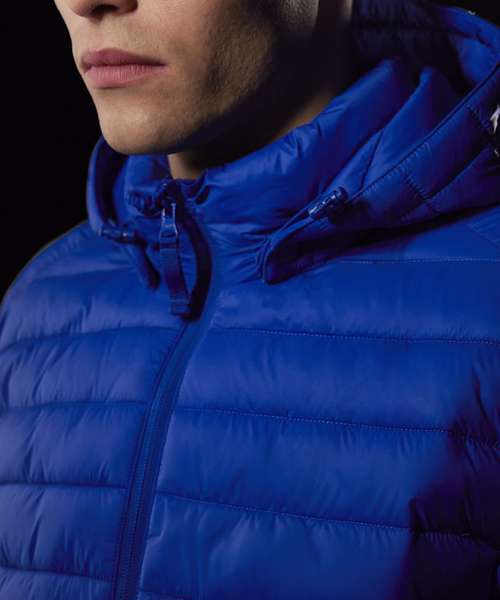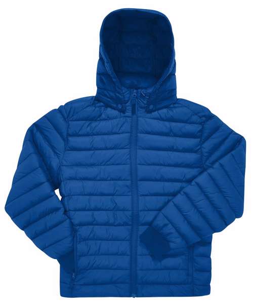 Protection and performance. Durable water-repellent (DWR) finish. Light and warm recycled synthetic down padding. Adjustable detachable hood with standing padded collar, for customised protection. Full-length internal storm flap enhances wind protection. 1x1 rib on cuffs with elastane for extra insulation. True unisex style. Two front pockets with zips. Tested and approved for all main decoration techniques. ‘B&C No Label’ solution for easy rebranding. PFAS/fluorine-free. Contains recyled nylon and recycled polyester.