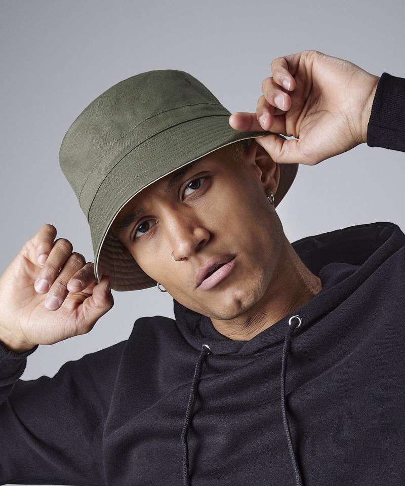 - TearAway adhesive fabric labelFully reversible styleOn-trend bucket hat