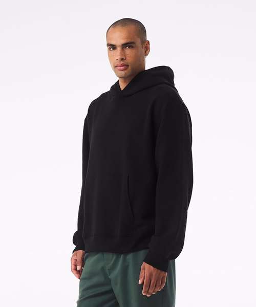 Side-seamed. Double-lined hood. No drawcord. Kangaroo pocket.