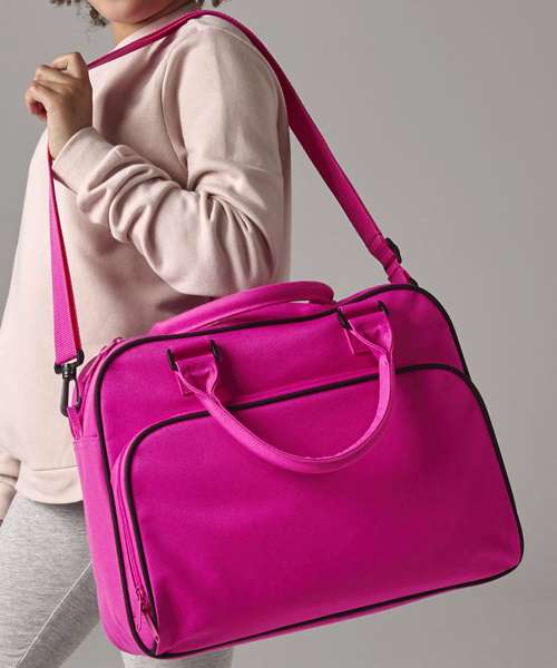 Retro styling. Detachable adjustable shoulder strap. Zippered main compartment. Zippered front pocket. Internal mesh pocket. Internal baseboard. Self-fabric carry handles.
