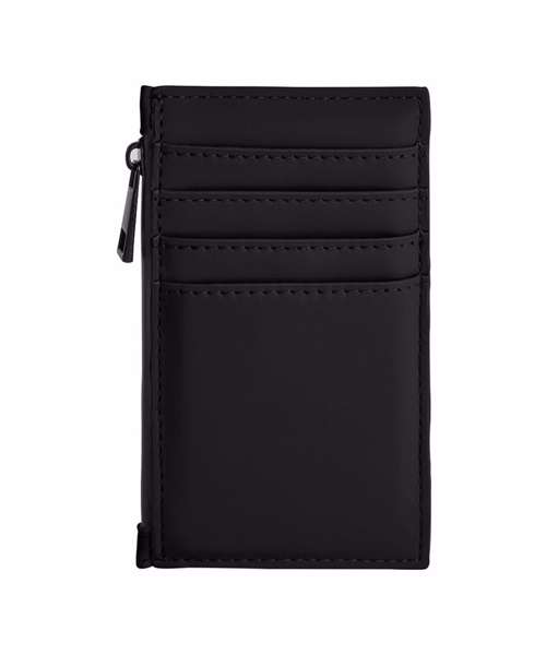 Water-repellent fabric. Minimalist styling. Holds four credit cards. Rubberised zips. Can be decorated front and rear. TearAway label for ease of rebranding. 100% Recycled polyester.