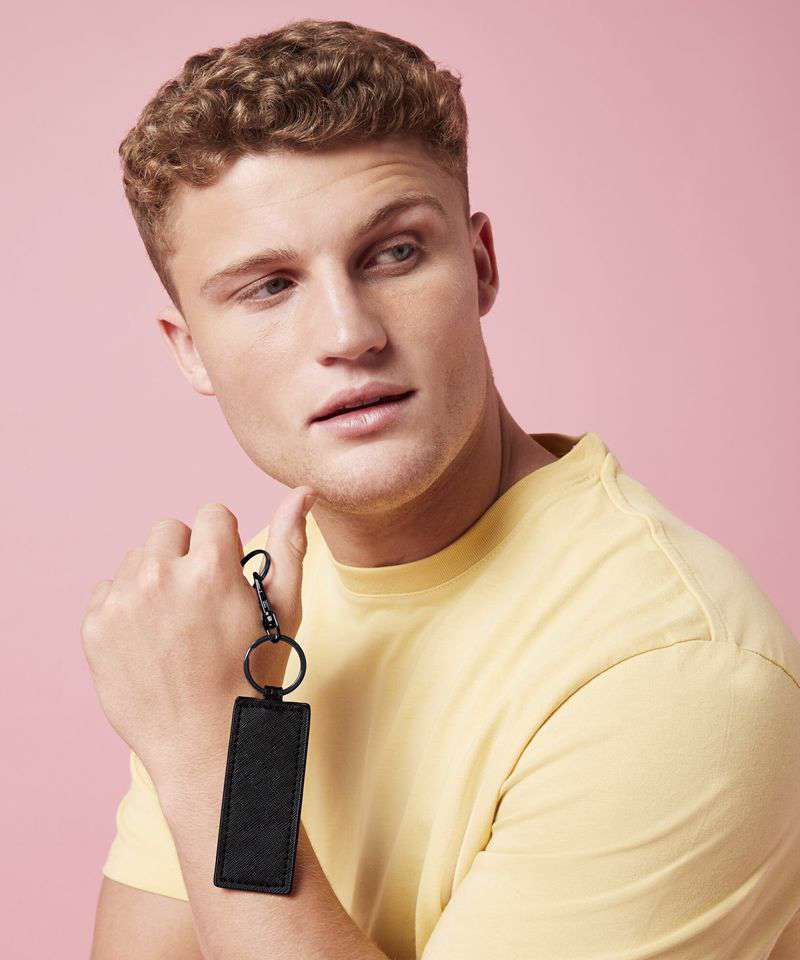 Personalise your Boutique collection with these interchangeable and customisable key clips. Designed for ease of decoration, this 100% leather-look design can be used as a keyring or bag charm. Fine grain Saffiano fabric gives a luxurious finish, while a high-shine, gold metal key clip adds to the premium quality. Also available in circular (BG745) and heart-shaped (BG746) styles.