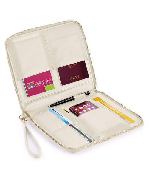 TearAway label for ease of rebranding. Saffiano fine grain. Can be decorated front and rear. Zippered main compartment. Zippered internal pocket. Multiple internal pockets. Holds 6 credit cards. Soft-touch lining. iPad mini/ Tablet compatible. Multi-purpose use.