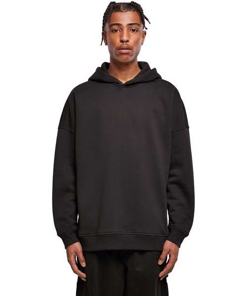 A relaxed men’s hoodie in a trendy oversized cut and with dropped shoulders, its hood is crossed at the centre front, creating a distinctive effect. It also features wide, classic rib cuffs and hem, and can be personalised with printing or embroidery. The material is a comfy mix of cotton and polyester.