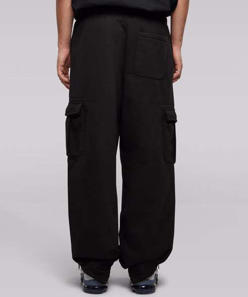 These men’s sweatpants offer patched cargo pockets and a convincing 90s look. They are equipped with an elastic waistband and elastic cuffs, while also featuring additional zips, and the loose fit completes the picture harmoniously. The sweatpants are made from extra-heavy brushed fleece, which can further be refined via flex or screen printing.