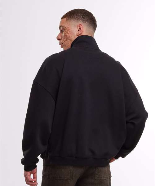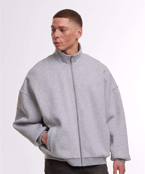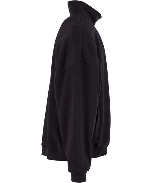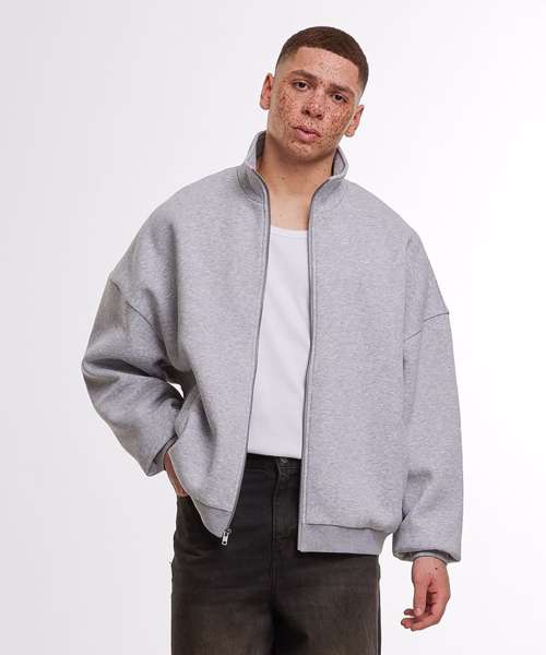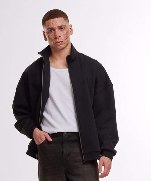 Oversized fit. Heavily dropped shoulders. Full metal-zip. Stand-up collar. Ribbed cuffs and hem. Half-moon at the neck.