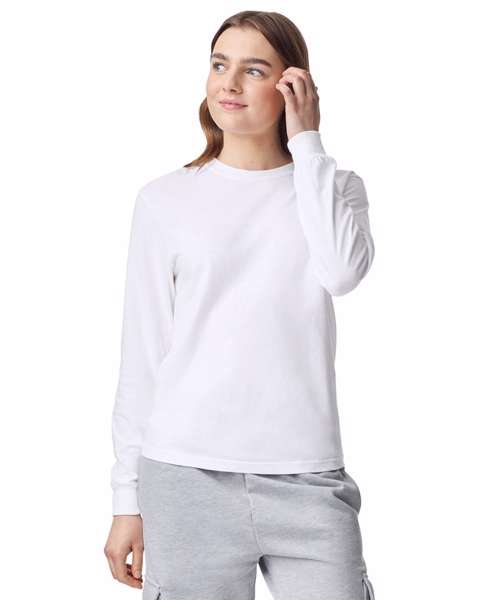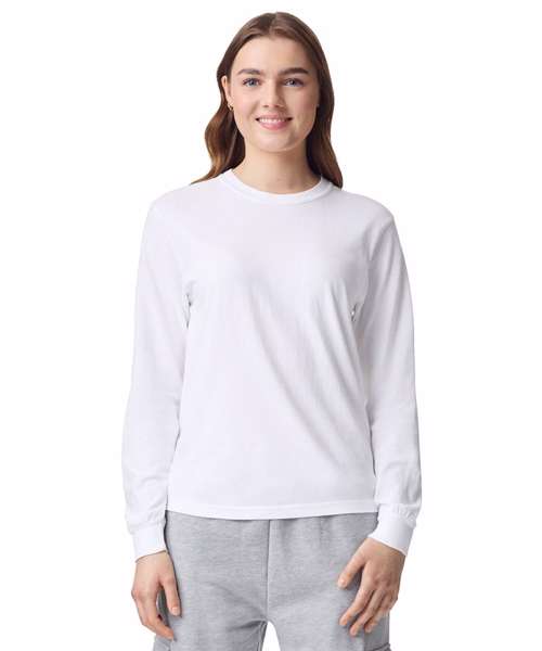 100% soft ringspun US cotton fabric and cotton threads. Top-stitched, classic-width rib collar. Ribbed cuff. Relaxed fit, seamless body. Signature twill label and shoulder-to-shoulder twill tape. Clean pigment dye colours are salt-free.
