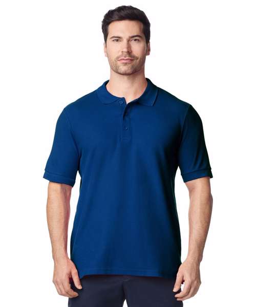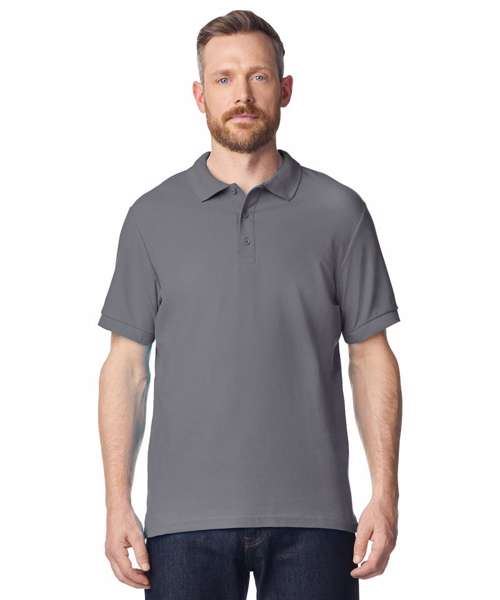 Combed Ringspun cotton double piqué knit. Side seamed with side vents. Contoured welt collar and cuffs. Tearaway label. Rolled forward topstitched shoulder. Clean finished placket with reinforced bottom box. 3 colour-matched buttons. Twin needle bottom hem.