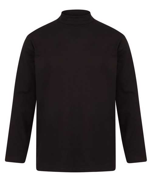 Cotton rich with double thickness rib roll neck. Reinforced shoulders and neck. Twin-needle stitching. Hemmed cuffs.