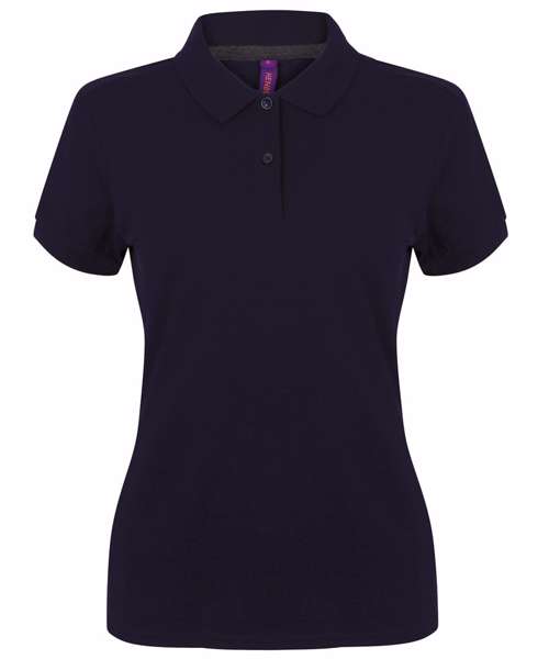 Modern Ladies fit with shaped side seams. Lightweight micro-fine piqué with a short point collar, fitted sleeve and cuffs. Micro-fine piqué is ideal for printing. 2 Button placket, DTM buttons. Contrast herringbone tape in back neck. Henbury Cut-out back neck brand label.
