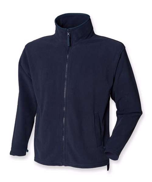 Polyester microfleece with anti-pill finish. Smooth surface for ease of decoration. Front zip pockets. Drop tail. Binding at neck edge. Side vents for ease of movement. Outer hanging loop. Soft stand collar.