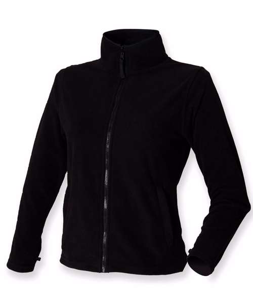 Polyester microfleece with anti-pill finish. Smooth surface for ease of decoration. Front zip pockets. Shaped side seams. Binding at neck edge. Outer hanging loop. Soft stand collar.