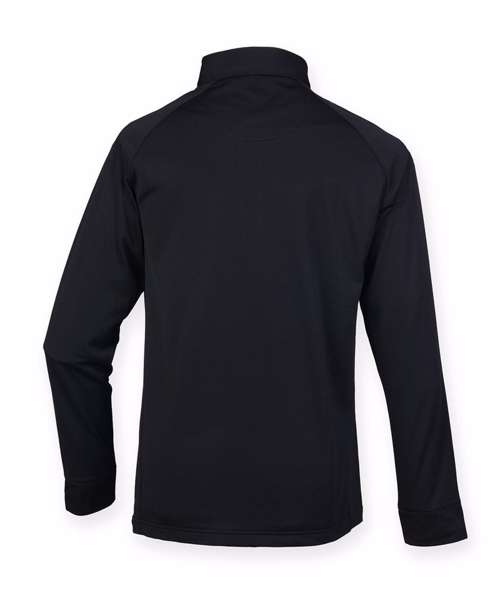 Needle-out face with inner fleece. Raglan sleeves. Side pockets with hidden zippers. Sports zip with self-coloured puller. Henbury Cut-out Brand label.