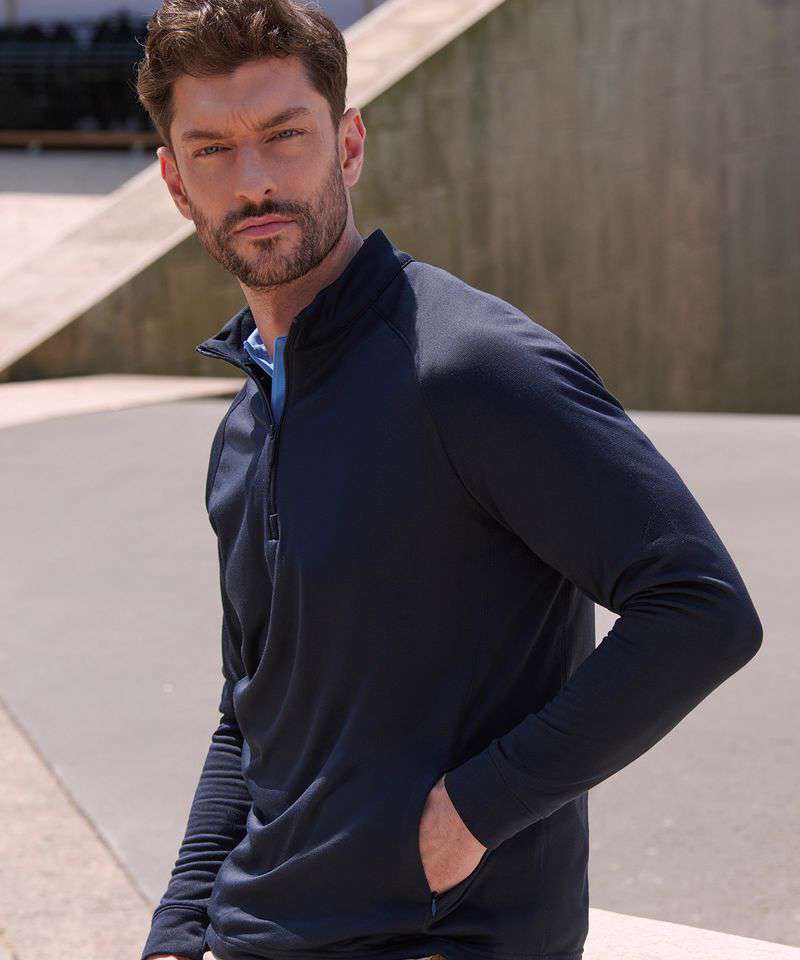 This on-trend adults quarter-zip with wicking finish is a great option for a sporting environment. The wicking finish will ensure you stay fresh for maximum performance.