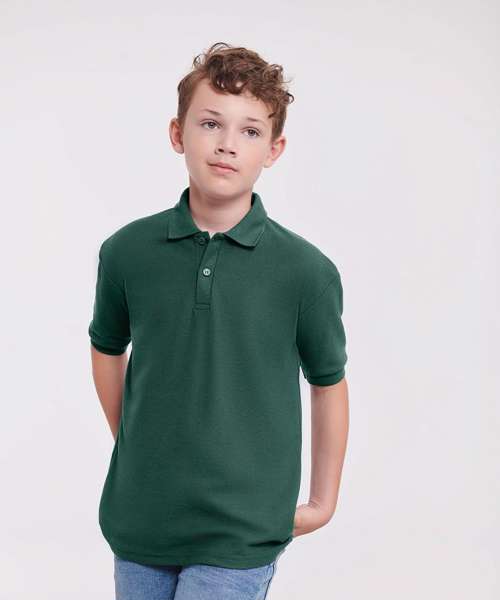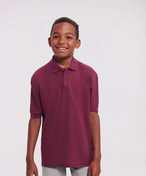 Unique double yarn construction. Superb performance after repeated washing and wearing. 2 button placket with matching colour buttons. Pique knit short sleeves. Taped neck and reinforced shoulders. Classic flat knit cuffs. Twin needle hem for added stability.