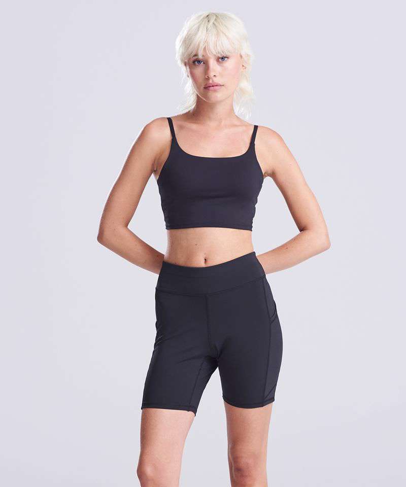 The Just Cool women’s recycled tech shorts have four-way stretch fabric for maximum comfort yet don’t restrict your movement. They incorporate a sleek, fashion-forward design, while the two side pockets offer maximum space for carrying necessary items.