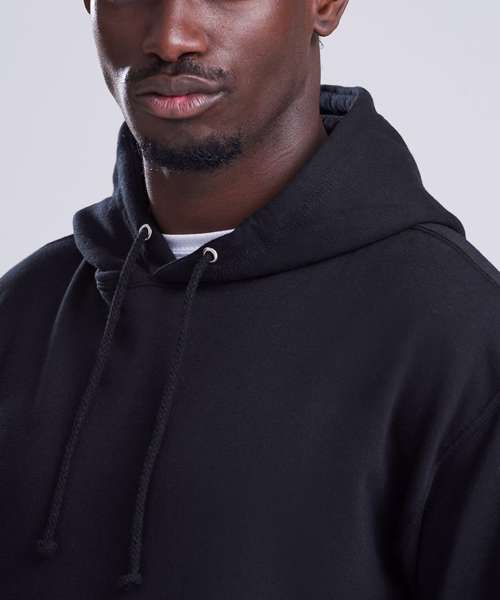Twin-needle stitching detailing. Double fabric hood with self coloured cords. Kangaroo pouch pocket. Ribbed cuffs and hem. Soft cotton faced fabric creates ideal printing surface. Simple tear out label makes it perfect for rebranding. Brushed inner fabric.
