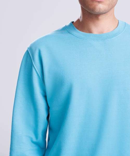 Crew neck sweat. Set-in-sleeves. Taped neck. Stylish fit. Soft cotton faced fabric creates ideal printing surface. Simple tear out label makes it perfect for rebranding. Twin needle stitching detailing. Ribbed collar, cuff and hem. Brushed inner fleece.