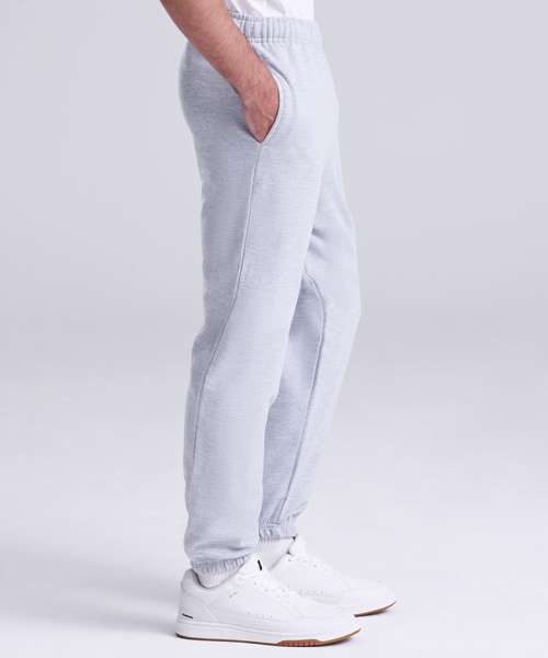Cuffed leg opening. Elasticated waist with inner drawcord. Side pockets. Soft cotton faced fabric creates ideal printing surface. Simple tear out label makes it perfect for rebranding. Brushed inner fleece.