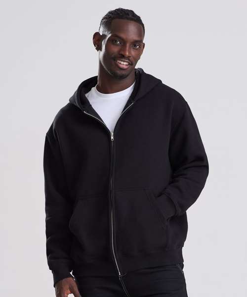 The Vision heavyweight zoodie is built for comfort and customisation. With a relaxed fit and heavyweight construction, it delivers durability and a clean, modern look. A three-panel self-fabric hood sits neatly without drawcords, while the YKK silver zip provides a premium finish. Made from 100% cotton-faced fabric for bold prints, with a brushed inner fleece for softness, it’s completed with ribbed cuffs and hem, twin-needle stitching, a locker patch and a size label only – the perfect base for branding. Made with recycled polyester.