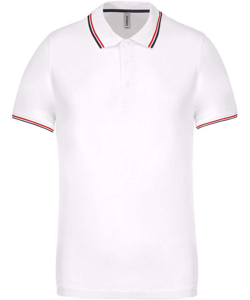 100% cotton piqué. 3 button placket. Contrast taped neck and side vents. Flat knit rib with contrast tipping at neck and cuffs. Twin needle finishing. Oeko-Tex certified.