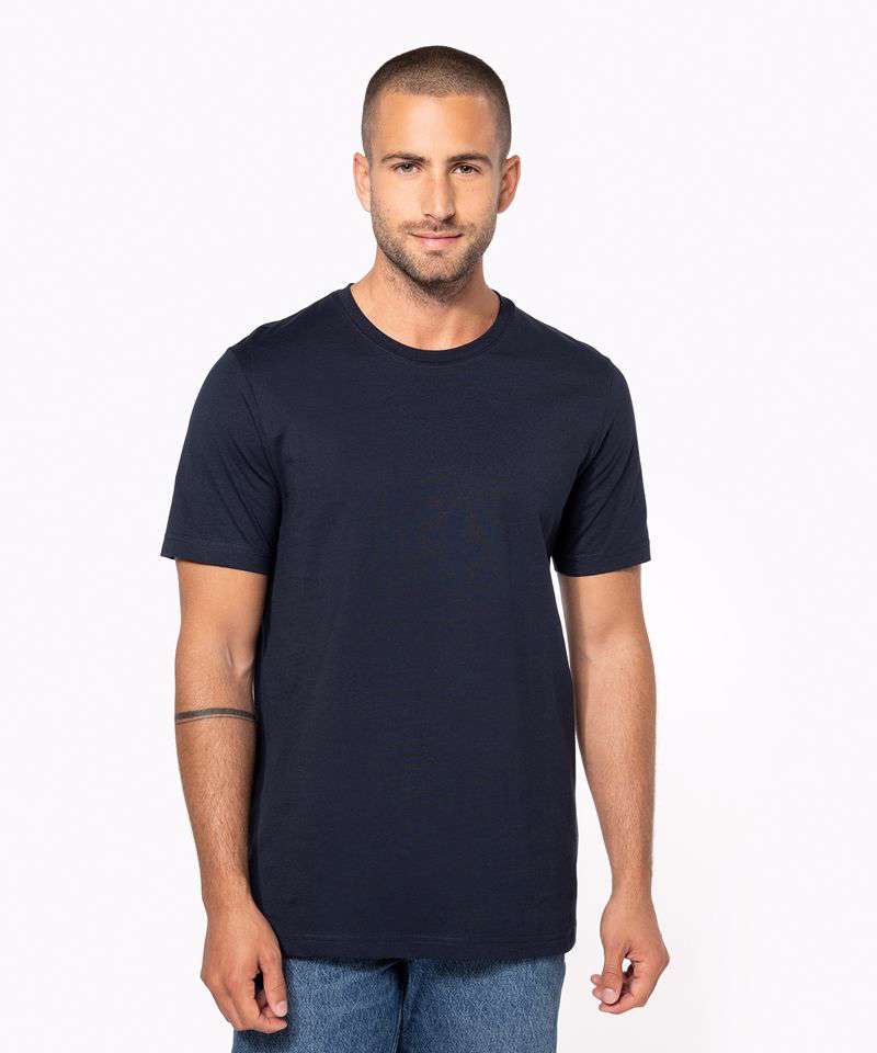100% Cotton enzyme washed for extra soft hand feel (Oxford grey : 90% Cotton / 10% Viscose). Slim fit. Self fabric neckline. Heather Grey contrast taped neck for all colours, except for white body where tape neck is White and Oxford Grey body where tape neck is Dark Grey. Twin needle finishing. BSCI certified. Oeko-Tex certified.