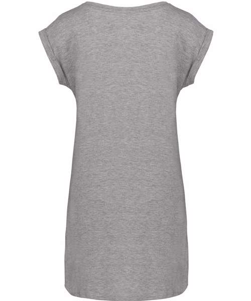 Feel comfy wearing this long ladies t-shirt.100% combed cotton jersey (Light Grey Heather : 90% cotton / 10% viscose). Comfort fit. Wide neck with neck tape and turn-up armhole finish. Curved hem with twin needle finishing. No brand label at neck, only size tag for easy relabelling. Certified STANDARD 100 by OEKO-TEX®N° CQ1007/7, IFTH.