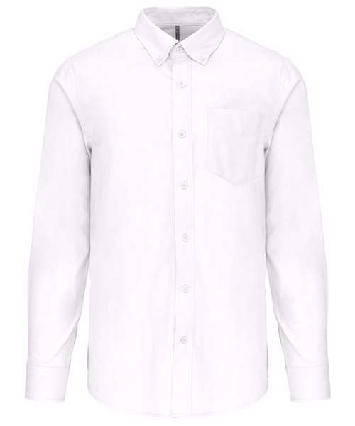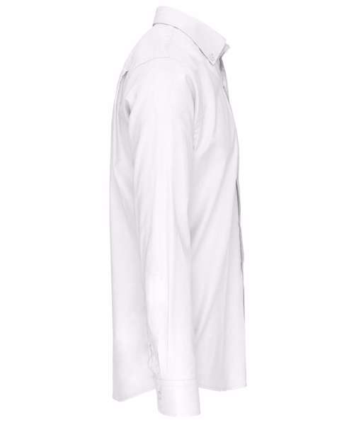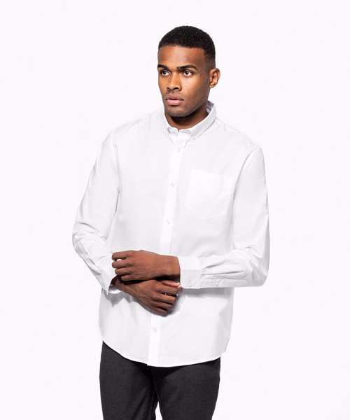 70% Oxford cotton/30% polyester. Easy-care fabric. Button down collar. Matching buttons. V-shaped left chest pocket. Double back yoke with 2 side pleats. Adjustable rounded button cuffs with button placket. 2 spare buttons. Shaped hem. Certified STANDARD 100 by OEKO-TEX® N° CQ 1007/7, IFTH.