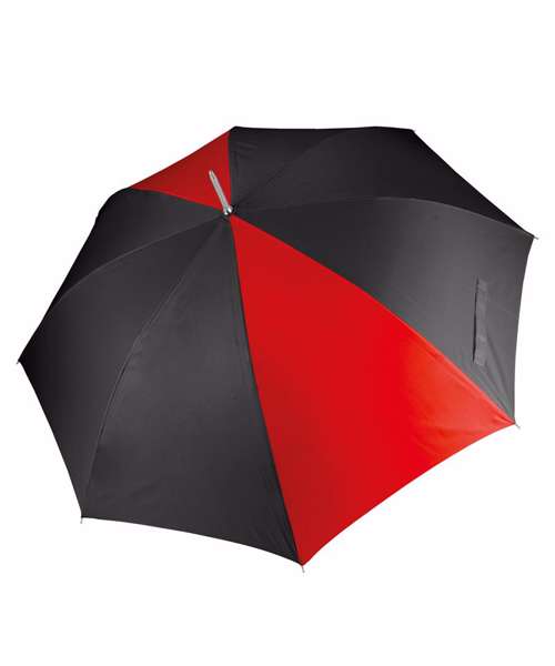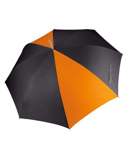 23" (58.5 cm) rib length golf umbrella. Auto opening. 10 mm black metal fibreglass shaft. Metal rib tips. Golf handle in matt polycarbonate. Polyester 210T canopy.