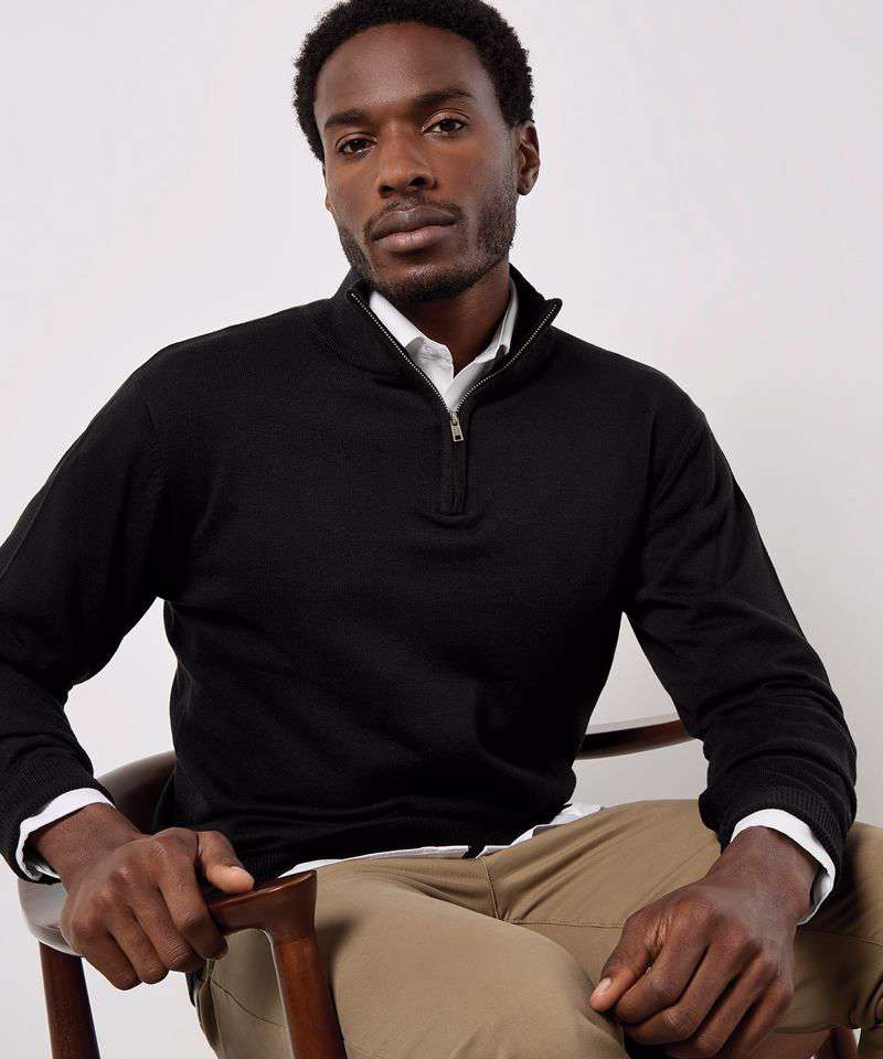 A modern essential, this regular-fitting 1/4-zip sweater is a versatile addition to any smart-casual wardrobe. Enzyme-washed for enhanced durability, it has improved resistance to pilling, with excellent colour retention. The compact, smooth fabric provides a clean canvas for embroidery, while the brushed silver YKK zip adds a sleek finishing touch.