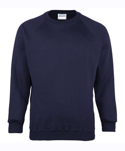 Easycare, crew neck, raglan sleeve sweatshirt with cover seam finish around neck, welt and raglan. Herringbone taped neck. Also available in kids.