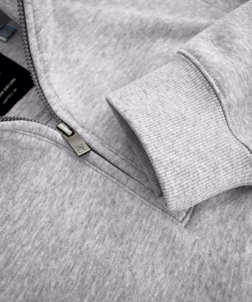 This versatile and fashionable luxury sweatshirt is made in a comfy, organic, cotton-rich blend. The understated design, with its ¼-zip funnel neck and elegant detailing, makes it wearable for multiple occasions and allows for pairing with more formal wear. The brushed, fleecy lining and short-shave treatment will make the luxurious feeling last forever.