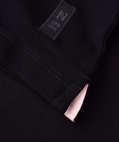Classic double thread piqué. Coloured decoration details at neck-tape and at the bottom slit. Feminine styled four-button fastening. Combed organic cotton. Organic Content Standard 100 (OCS Certified, CU1038206).