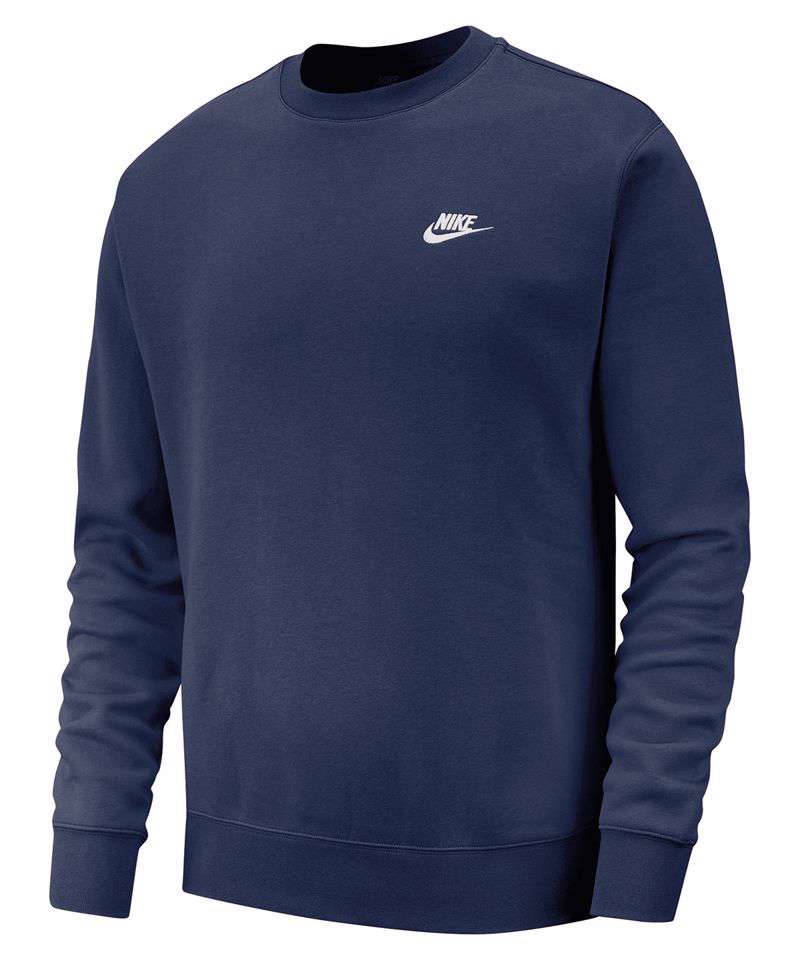 A wardrobe staple with an elevated everyday look, the Nike sportswear Club crew combines the soft comfort of brushed-back fleece, which is soft and smooth against the skin, with a classic embroidered logo on the left chest.