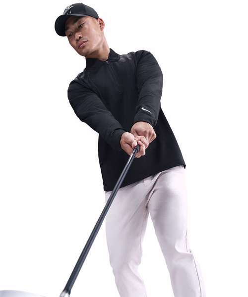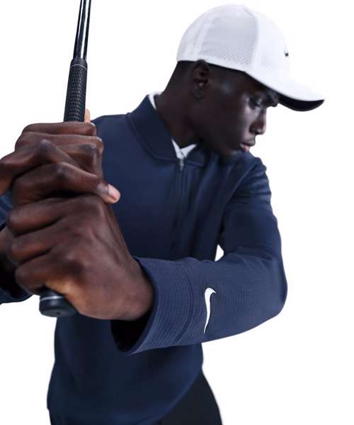 Cosy up to the pin in this men’s 1/2-zip top. A go-to layer for cooler rounds, it has a brushed Therma-FIT fabric to help you stay warm without weighing you down. Some stretch in the fabric allows you to make a full turn in your swing and move through the ball with ease. Brushed thermal knit fabric. 1/2-zip design. Embroidered Nike golf shield logo. Machine wash.