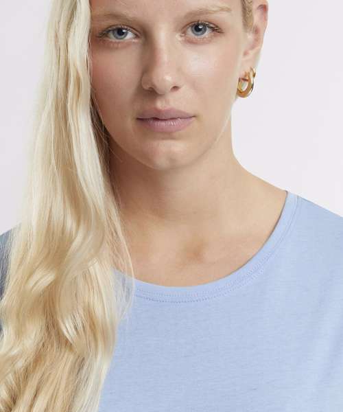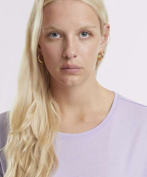 Effortlessly chic with a round neckline. Comfortable loose fit for everyday wear. Classic short sleeves, perfect for layering. Timeless design with a seamless collar. Simple elegance in a plain pattern. 100% Certified organic cotton.