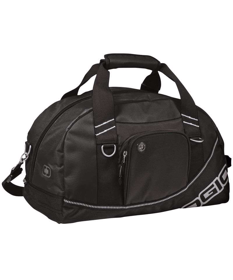 Sized to fit the gym locker, this duffel opens wide to reveal a roomy interior that holds shoes and a change of clothes.