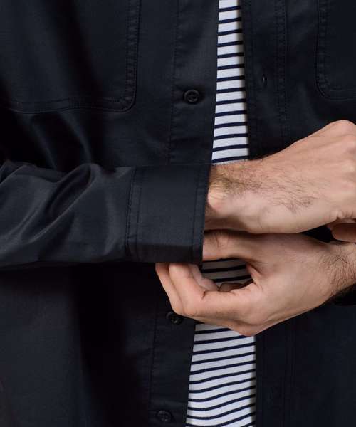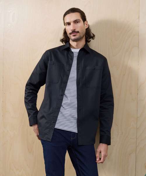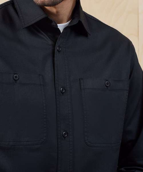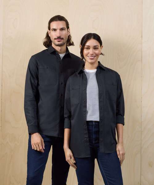 Lightweight overshirt with a spacious unisex fit offering a fadeless finish that locks in colour for 20+ washes. Soft collar style. Self-colour button-through. Two button-down chest pockets. Single-button cuff and sleeve guard. Curved hem. Back yoke for shape and fit. Twin-needle stitching throughout. Contains certified recycled polyester. Washable to 85°C.