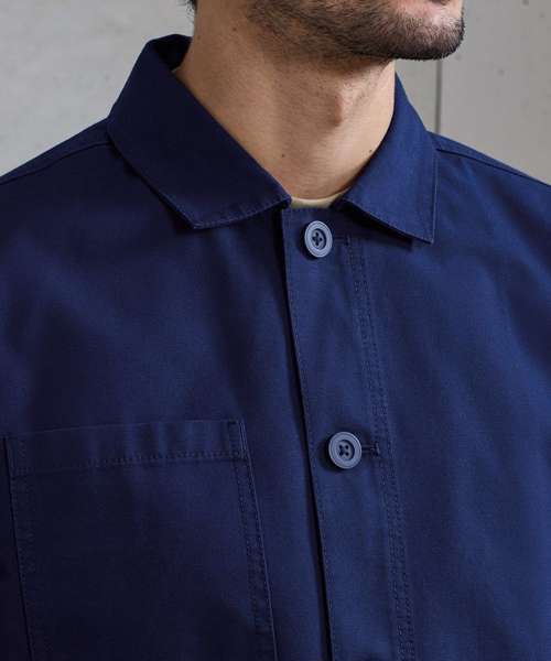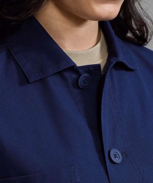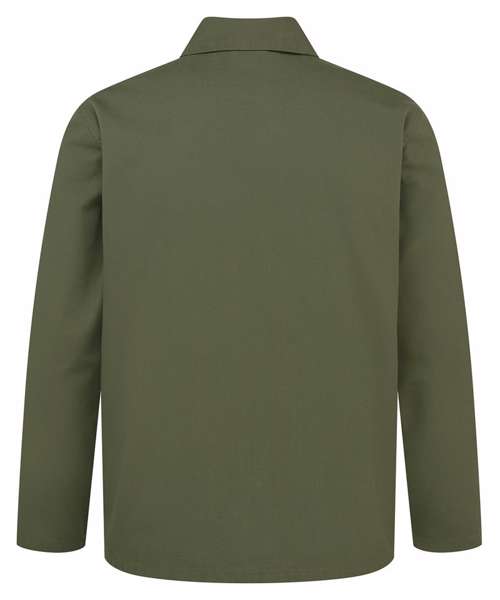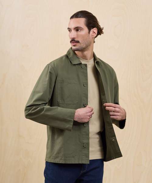 Classic chore jacket with self-coloured button fastening, offering a fadeless finish that locks in colour for 20+ washes. Durable canvas fabric with a soft feel. Stitched placket with twin-needle stitching throughout. Set-in sleeves. Right chest mitred patch pocket. Two lower mitred patch pockets. Straight hemline. Loop on the inner neckband for hanging up. Contains certified recycled polyester. Washable to 60°C.